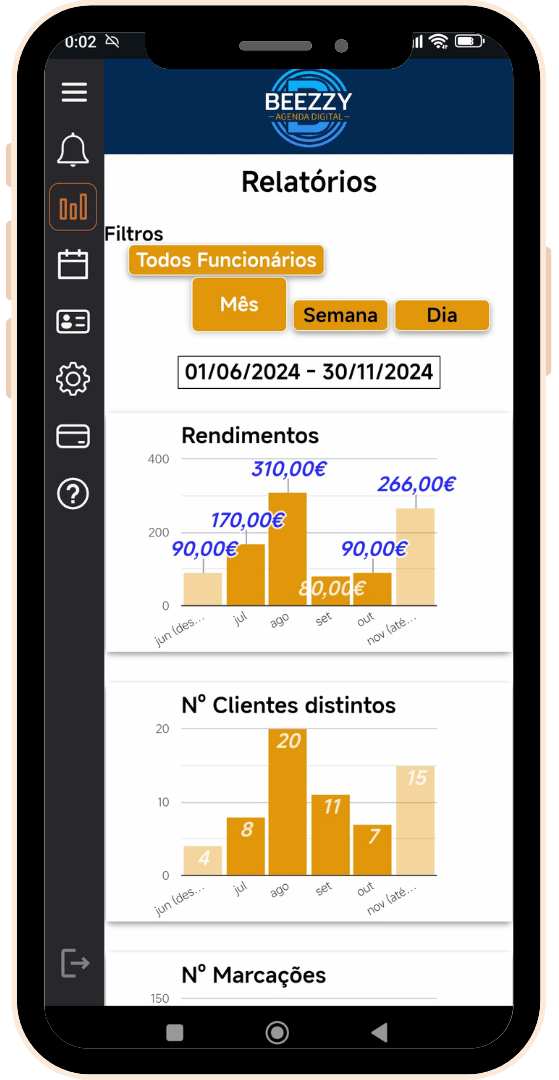 Saiba quanto é que cada serviço lhe rendeu e quantas marcações fez de cada serviço